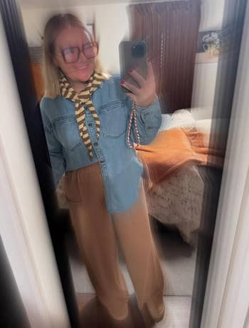 Promising review: "I ordered this scarf in two colors: coffee and green. I truly love both! I had considered getting a similar scarf from a trendy brand for $30, but I found this one and decided to give it a try! The quality is the same. I love how soft the knit is on my skin; it doesn't feel scratchy or overly hot like cheap knit usually feels. The size of it is perfect for draping over my shoulders, especially with a little scarf ring to tie it in front. I'm not quite sure how else I'll style it yet. Overall, I think these scarves are well worth the money! I highly recommend the brown one, very versatile!" —Ym
