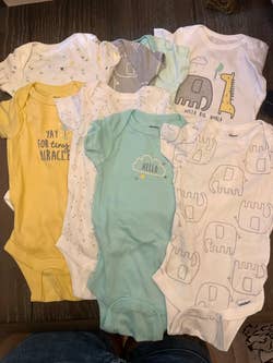 Promising review: "These Gerber onesies are a total staple in our house. My chunky 6-month-old fits in them perfectly. They have a nice stretch and don’t feel tight or restrictive. The material is super soft on his skin and holds up great after lots of washing. They do shrink just a little, but I actually like the closer fit afterward. The snaps are good quality and easy to open/close, which is a must for those constant diaper changes. I love that they go with everything, so they’re basically our everyday uniform. Great value and great quality, so I definitely recommend stocking up!" —Lindsay