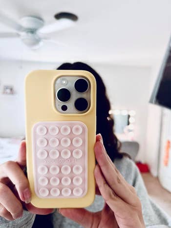 Promising review: "I LOVE this suction backing, it is perfect for all my content creation needs. The suction is great, and it sticks to my phone. I can place it almost anywhere, and it does better than any tripod! I saw someone else showcasing it on TikTok, and I added it to my cart right away!! Highly recommend!" —Chelsea Patterson