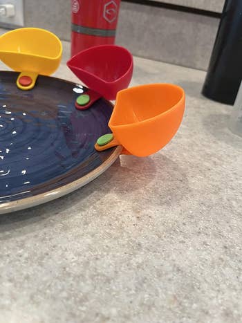 Promising reviews: "My kids LOVE using these to hold their condiments for dipping. They hate when their veggies roll into their ketchup, or their fruit rolls into their ranch on their plates. These cute cups solve that problem beautifully! Easy to rinse off and toss in the top rack of the dishwasher after meals are over." —FNO