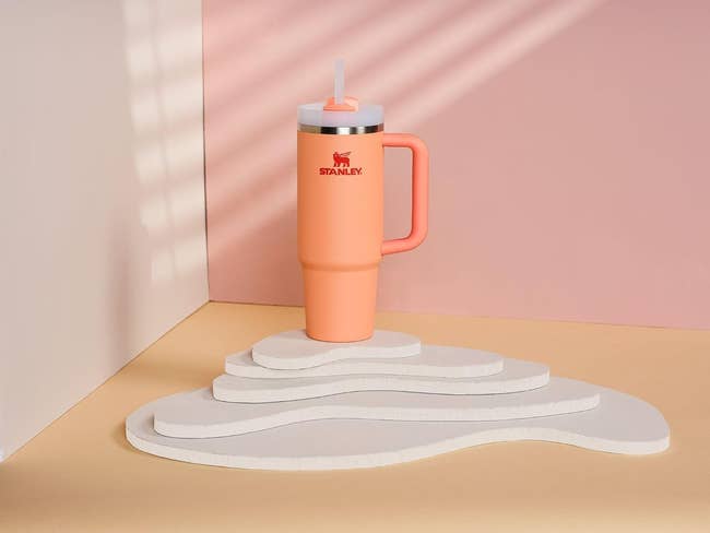 Promising review: "I'm not one to hop on a trend, but when the nectarine color came out, I just adored it, so I figured I might as well try it and see what the hype is. Well, first off, the color is absolutely just as gorgeous as in the photos advertising it! Second, the quality of these cups is out of this world great! The top rotates if you don't want to use a straw, and you can simply use it to sip coffee, etc., which, having both options, is what I have literal dreams of in a cup. The handles are nice, it fits in cup holders, and it's overall the perfect size... I'm a nurse, so this size cup is vital for me to stay hydrated without hurting my wrists packing something heavy every day, which is a big bonus for me." —Timmy