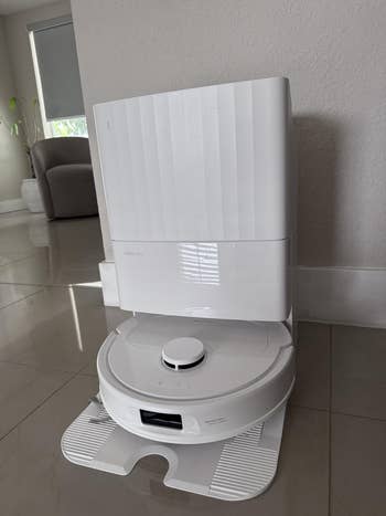 Promising review: "I am very pleased with this purchase! The vacuum and mop both work very well. I have two cats, and they are always dropping their toys (and themselves) in front of it. It slows down and navigates its way around the obstacle, then gets right back on track. The app works very well to control it. It was super easy to set up, and it mapped the floor itself. It picks up all the dirt and dust on the floor without issues, and it's pretty quiet. I run the vacuum once a day and have it mop every other day. My floors are really clean now!" —Amazon Customer