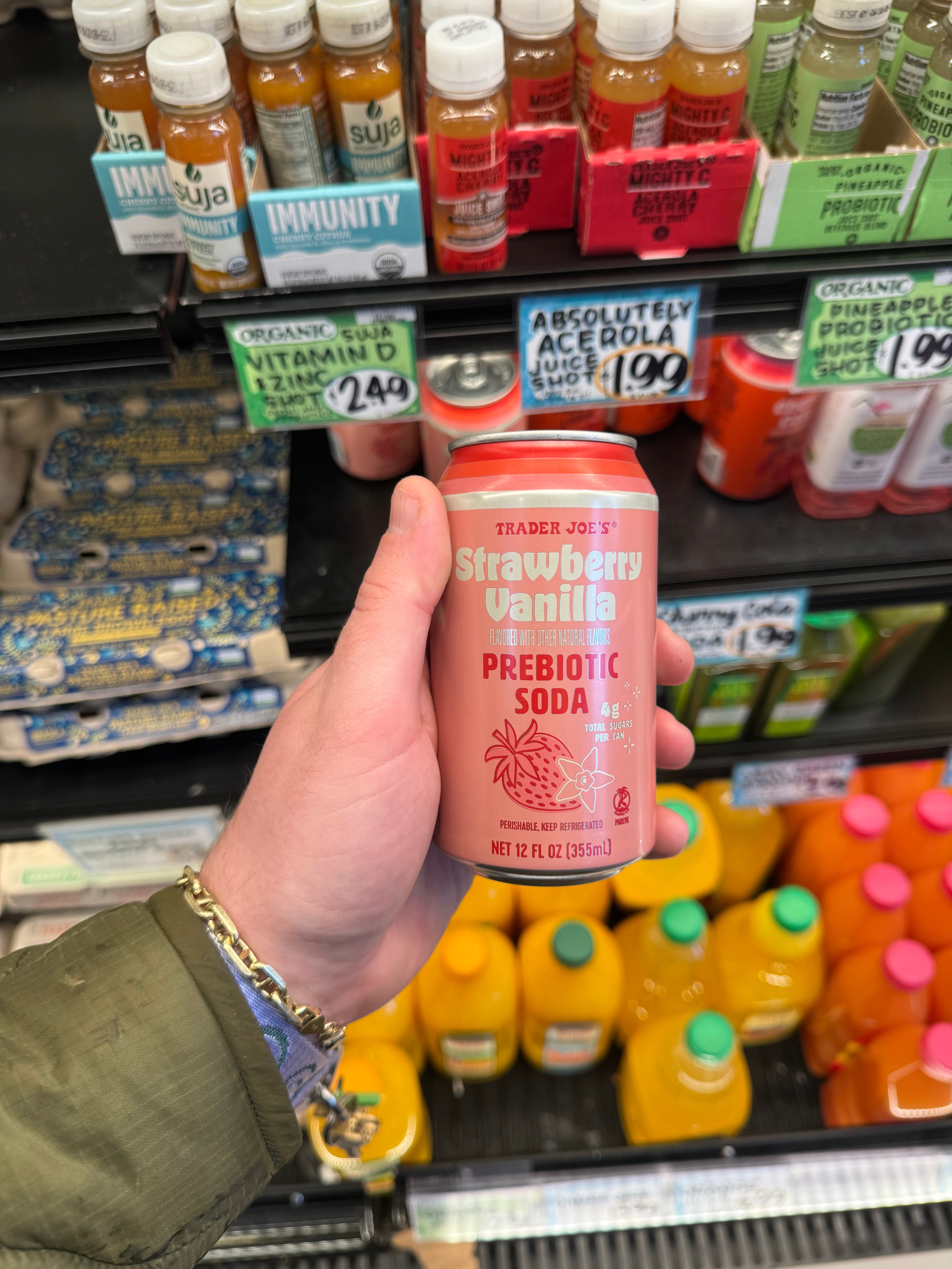Is there room for Trader Joe’s at the prebiotic soda table? I’m here to find out. I'm a writer based in Brooklyn that covers restaurant and recipe trends for Tasty. The Trader Joe's lineup of prebiotic sodas costs $1.99 a can, while at my local Whole Foods, Olipop costs $2.59 a can. Each category was ranked 1 (awful) to 5 (incredible). For sweetness, however, a 5 means very sweet, and a 1 means not sweet at all (a low score isn't negative; it's just indicative of less sweetness).