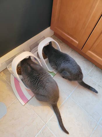 We hope you love our recommendations! While every product is independently chosen by our editors, BuzzFeed and our publishing partners may collect a share of sales or other compensation from the links on this page. You can read more about how our affiliate partnerships work in our Editorial Standards & Ethics Guide. This self-emptying litter box is actually about to become your new favorite thing. The hands-free cleaning cycle runs 20 minutes after your cat leaves the litter box, moving their waste to a leak-proof, odor-controlled, and disposable tray underneath. Also grab a bag of scoop-free crystal litter and tray refills, too. Promising reviews: "This litter box is a must for any busy family that struggles to keep up with the daily maintenance of having a cat and a litter box! It works well, and my cat is so happy always having a clean litter box." —Kelsey Jeffries "I rarely write product reviews but this litter box actually made a huge difference for my house! I have had a cat for about 10 years who decides to do the number 2 about two feet outside the litter box. He has ALWAYS done this, no matter what type of litter or box. I even asked my vet about it, and his response was, 'Some cats are just jerks.' 😂 Then I got this litter box. For the first time EVER, he does ALL of his business in the box! And there is no odor at all!! I love it so much I have two. Would highly recommend!!" —Emily Stokes Reviewers say it works for both small and bigger cats alike! One reviewer's tip: Make sure the side without the grooved lid is facing a wall so that cats can't jump out that way (the grooved side is what prevents litter tracking). Note that if you have a senior cat with limited mobility, you'd want to provide a litter box with low, easy access for that cat. Promising review: "We have three cats and have to manage a silly amount of cat politics. We've learned that having a higher number of litter boxes, and spread to different locations, cuts way down on bullying and helps cats to feel safe, [as they are] instinctively territorial about where they put their scent and feel vulnerable when they're 'in the act'. This cat box helps to be able to have boxes in rooms of the house where a cat box would feel garish, not to mention the litter mess. It took a little while for my cats to try it out but they're using it now and don't get to kick the gravel out everywhere (I swear they do it on purpose)." —Dism Get it from Amazon for $33.99+ (available in four colors). BuzzFeed Shopping editor Jenae Sitzes and her cats approve of this: "Both of my cats took to this fountain immediately — I do feel like they drink *way* more water with it around, and I love not having to stress about refilling their water bowl every single day. I did take the flower waterfall off of mine (as shown in the gif above); you may find your cat prefers that. It's super quiet with only the lightest trickling sound (which is honestly kind of relaxing), and it gets louder when the water gets low inside, signaling to you that it's time to refill. I always do a quick clean with soap and water at that point, too — it takes no more than a few minutes. Just be sure to do a deep clean of the filter every so often, too. It pops open really easily for cleaning!" Get it from Amazon for $27.98+ (available in three colors and an even larger-capacity model). Jenae says, "I've owned these microchip pet feeders from Sure Petcare for a few years now, and while it was a pricey investment, I consider them worth every single penny. They alleviated a ton of stress when I owned a cat (who has since passed on) who was always wanting to gobble down his brother's meals and had a tendency to be overweight in his younger years. Separating them for meals just wasn't working — they would whine at the door and simply not eat enough unless they could eat side by side and have free access to food throughout the day — but I also couldn't be sure that my younger cat was eating enough with his brother gobbling up part of his meals, too. When my vet started throwing around the word "diabetes" as a very real concern if Sneaky didn't start sticking to a controlled diet every day, I knew I needed to finally cough up the money for microchip feeders — I mean, it'd be a drop in the bucket compared to the long-term cost of cat insulin. "The setup was ridiculously fast, the open-close function works beautifully, and my cats learned how to use these almost immediately. Finally, Sneaky could *only* eat what was in his feeder, which allowed me to control his calorie intake and see exactly how much food he's eating daily — and I could be sure that my other cat was getting *enough* food, too. This is also a fantastic solution if you have cats on different diets due to health reasons, and if one of them starts eating way less for some reason, you'll know immediately and be able to report that to your vet. I also love that the feeder comes with both split and regular bowls — I used the split bowls to serve my cats both dry food and wet food at once! "BTW, I have the basic microchip feeder (because it was the only option in stock at the time), but there's also a Wi-Fi-enabled option that connects to the Sure Petcare app for monitoring eating habits, weighing food portions, and more." Get it from Amazon for $199 (feeder bowls available in four colors). Promising review: "This is an excellent product. I bought this to replace my previous one that I accidentally broke. The Genie keeps the bathroom litter box odor-free. I have three cats and one litter box and even with three, I only dump the bags every THREE WEEKS (or so) so it saves me having to make several trips to the outdoor garbage bins every single day. The only thing I don't like is that I can't find cheaper inserts for it any longer so I have to purchase the more expensive Genie ones but that's really my only complaint." —Coryelle Get it from Amazon for $25.99 (includes about 2.5 months worth of refill