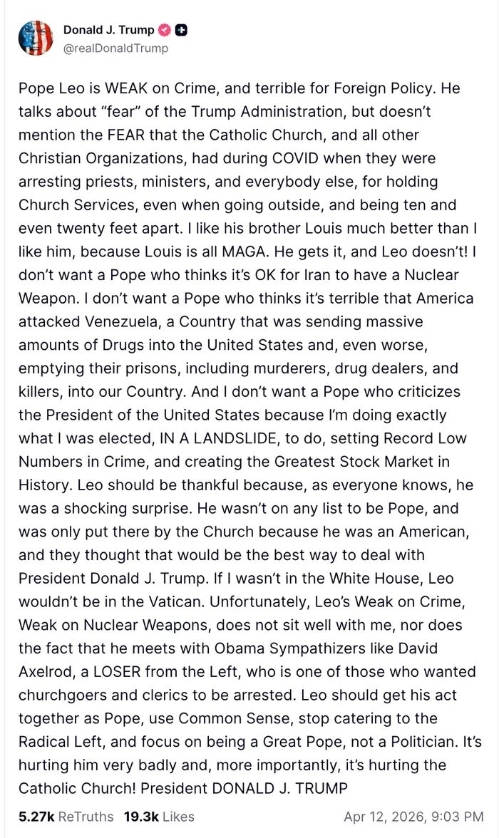 Pope Leo XIV is leading the Catholic Church and IDGAF army.