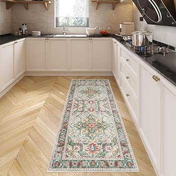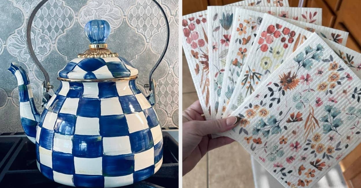 We hope you love our recommendations! While every product is independently chosen by our editors, BuzzFeed and our publishing partners may collect a share of sales or other compensation from the links on this page. You can read more about how our affiliate partnerships work in our Editorial Standards & Ethics Guide. Your kitchen is the heart of the home. So it’s only fitting that it gets some aesthetic accents to really make it ✨sparkle✨. Promising review: "They’re so nice and they look great on your kitchen counter. I use them for cereal and cookies, and they definitely add a nice touch to my kitchen." —BananaJo Get a set of five from Amazon for $27.99 (also available with a wooden lid). Promising review: "Very good quality liner. I love the daisy print and it is a good thickness. Super easy to cut (I used a box cutter). Definitely recommend!" —Karen Get it from Amazon for $7.49+ (available in 16 sizes and 16 patterns). Promising review: "Last Christmas I gifted the black and white checkered set to my son as his new kitchen tile, and he’s gotten so many compliments. I got the green set for my coffee station (green is my favorite color), and they look great. Great quality. They don’t overheat in the microwave. I highly recommend." —Orly Seelbinder Get them from Amazon for $27.99+ (available in five colors/patterns). Promising review: "I have a toddler I have to cut everything up for, and these scissors have made my life INCREDIBLY easier. I cut PB&J into perfect squares and grapes into three pieces effortlessly with these scissors. It cuts chicken and other meats simply. They’re sharp, safe, and so affordable, too. Don’t look elsewhere; these are the best!" —Adrian Get it from Amazon for $9.99 (available in five styles). Promising review: "I've had this for about a month now, and it's been working great! I bought this b/c it was made of bamboo and other more environmentally friendly materials. My friend had one made of metal, and it ended up staining her countertops with the rust. It's also really cute!" —Lucy D Get it from Amazon for $34.99+ (available in five colors). And their cotton/cellulose make up means that they are 100% biodegradable at the end of their lifecycle. Just toss them in the compost! Febu is a small business that specializes in earth-friendly, non-toxic home products. Promising review: "I love these! I have used these for years instead of a sponge or a dishrag. They hold up great, mop up crumbs and spills quickly, can be popped in the dishwasher to clean, and bring a bit of color to the sink area in my otherwise neutral kitchen." —Wynnefred Get a set of five from Amazon for $14.95 (available in 15 very pretty sets). Promising review: "I recently purchased this rug, and it has truly transformed my kitchen space! The classic pattern and worn finish give a timeless look, blending perfectly with both modern and traditional decor. The luxurious velvet texture is soft and feels amazing underfoot, making it not only beautiful but also comfortable. What impressed me the most is how pet- and family-friendly this rug is. With kids and pets around, spills and messes are inevitable, but this rug handles them with ease. It’s machine washable, which makes cleaning incredibly convenient. I also love that it’s low-pile, so it fits seamlessly under furniture and doors without any issues. Pet hair and dander don’t get trapped, which is a huge plus for us! The non-slip TPR backing keeps the rug securely in place, so I never worry about it shifting or causing accidents. It's perfect for high-traffic areas like the kitchen. Plus, the sturdy edges and durable design mean this rug will last for years without shedding." —Gadget Lover Get it from Amazon for $9.89+ (available in 11 sizes and seven colors). Eto is a small biz based in the UK that creates elegant wine decanters. Promising review: "Beautiful, stylish, and bold but not overbearing. Fits in the fridge with ease and is going to save so many precious creations." —Rebecca Get it from Eto or Williams Sonoma for $199+ (available in a mirror or satin finish and in four colors). Promising review: "We've had four of these glasses for over six months now and finally just added four more to our collection. These glasses are SO CHIC and are very similar to ones sold at Crate & Barrel, but are MUCH more durable. Unlike the C&B glasses, you can cheers without feeling like the glasses will break. In fact, they've tipped over in the sink a few times and are still intact. They dry beautifully, sparkle after the dishwasher, and we get so many compliments on them. I love them!" —Katie B Get a set of four from Amazon for $26.69 (available in two sizes and in a set of two and a set of six). It can hold up to seven bottles of wine and two bottles of champagne at the top. Promising review: "Bought two of these wine racks to fit on a bookshelf and they are perfect! The racks have a nice weight ,and the gold finish looks really good. I’m buying two more because I need to store more vino!" —Irishdiva Get it from Amazon for $24.99+ (available in five sizes and two colors). Promising review: "Beautiful Cabinet, the color is very modern and matches my house aesthetic, Very sturdy and affordable. It was easy to assemble. worth it" — Nilam Get it from Amazon for $199.99+ (available in three colors). There are 20 pieces in a set that include four salad forks, four dinner forks, four knives, four soup spoons, and four dessert spoons. *Bonus*: they are built not to bend, rust, or lose their shine. Promising reviews: "Great set! All my guests comment on how much they love this set of silverware. Very elegant!" —Shopper "If you're looking for silverware that can withstand regular use, maintain its luster, and elevate your dining experience, I highly recommend this set. It's a stylish addition to any home and a fantastic value for the price. One of the most remarkable aspects of this silverware set is its durability. De
