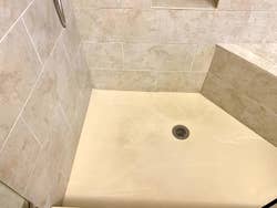 Promising review: "I have well water. Something in my well water reacts with copper plumbing and turns my shower tiles blue. Since my bathroom color scheme isn't on the blue spectrum, this is problematic. The well water also causes the shower glass to film up quickly. I've tried dozens and dozens of cleaners and scrubbed ’til my arms ached, trying to get ahead of the blue and scumminess. My ambition in life is NOT to be a full-time bathroom scrubber! I saw this stuff on a professional house cleaner's TikTok (sorry, I don't remember which one) and thought, 'What the heck, might as well give it a try.' Oh my goodness, the first day after my shower, I sprayed this stuff all over and walked away. The next morning, there was a NOTICEABLE reduction in the blue, and the glass looked clearer, too. On day two, I sprayed again and walked away. The next morning, the blue was gone except for a few spots on the floor tile, and the glass looked amazing. On day three, I sprayed the remaining spots, and the next morning, the shower practically looked new. NO SCRUBBING AT ALL!!!! This is my new favorite shower cleaner. The ONLY con I have is that it makes me sneeze while spraying from inside the shower, but I can live with that." —L. J. Petillo