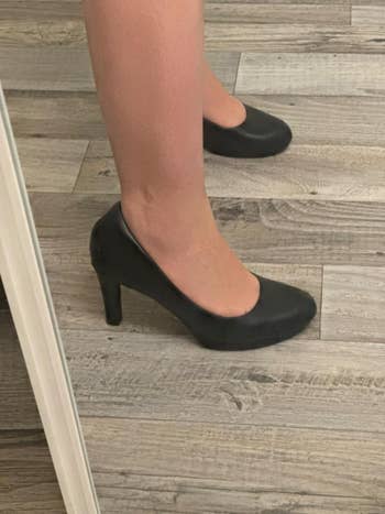 Promising review: "I've been wearing these heels every day for work as a flight attendant for the last year and a half. I do get them shined and polished in the airport every few months or so. They are by far my favorite pair of heels for work. I always get questions from other FAs asking if they are comfortable and my answer is always, 'After breaking them in for the first week or two so the leather stretches a bit, yes!' If you are a flight attendant looking at these heels I will say to buy half a size larger than you normally would because you will swell with the constant elevation changes and just in general as the day goes on." —Ashton
