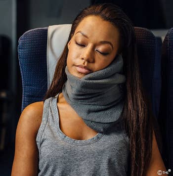 Promising review: "This is the best travel pillow ever. As a flight attendant, I travel all the time. This makes getting stuck in a middle seat palatable. I’ve used this in cars, planes, trains, etc; it's great. In fact my sister was so jealous on our last trip to Italy that she kept trying to steal it off me. Ordered her one for Christmas." —Amazon Customer