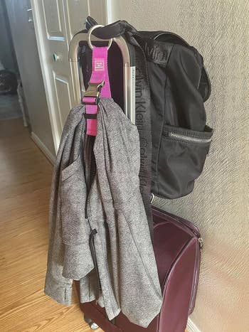 Promising review: "Definitely what I needed for my luggage as a flight attendant. Very heavy duty and perfect for me. Works great with my extra luggage and lunch bag to hang on my suitcase. Thank you so much. Will definitely buy again." —Mary