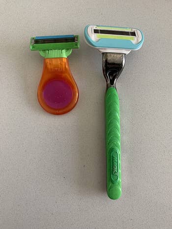 "I got this for a vacation and it was great! The little carrying container is awesome, and keeps you from having a weird, loose razor floating around in your suitcase. Plus, the heads are the same as a regular-sized razor, so you can keep using it when that one is worn out!" —Tegan H