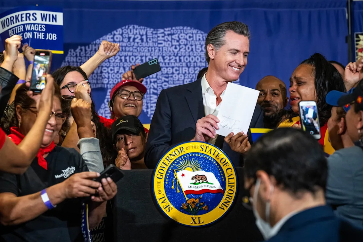 California’s raised minimum wage for fast-food workers is part of a wider conversation the state is having around the distribution of wealth, particularly as wage growth for low-income Americans is dwarfed by that of higher-income households. California voters will decide in November if the state will impose a one-time wealth tax on residents making more than $1 billion. A survey released last month in partnership with the Los Angeles Times, found that 52% of Californians were in favor of the ballot initiative.