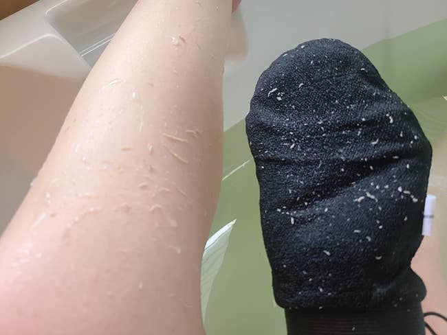 Promising review: "I used loofah, exfoliating gloves, scrubs, and lotions for years. I still battle with a little bit of KP. I bought these gloves. They work so well. So much dead skin came off and immediately got rid of the KP. Believe the photos. You will not believe the amount of dead skin that comes off. You will have soft healthy skin. This is a must buy." —YogaGirl