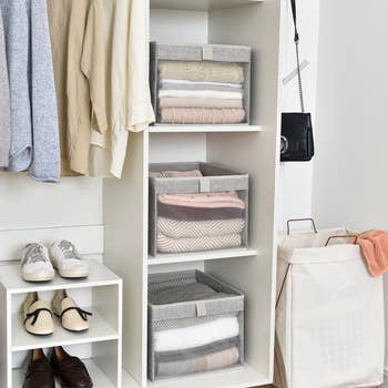 We hope you love our recommendations! While every product is independently chosen by our editors, BuzzFeed and our publishing partners may collect a share of sales or other compensation from the links on this page. You can read more about how our affiliate partnerships work in our Editorial Standards & Ethics Guide. Remember those nice hardwood floors you haven’t seen since you moved in? They’re still down there underneath the piles of clothes, towels, blankets, toys, shoes, and other things that have taken over your space. Promising review: "I got tired of sorting linens for my variety of bed sizes and purchased these storage boxes to solve that. These boxes have a screen front that allows you to easily see what’s inside. There’s a fabric tab on the top to help pull it off the shelf. It fit a standard wire shelf in my closet perfectly." —Cindy Promising review: "Fits perfectly in kitchen drawers! The organizer holds my longest knives with room for the shorter ones, all the silverware and has room for the odds and ends we use! We can find what we need fast and easily without moving everything around to find it. Yay!" —Joanne Price: $23.99+ (originally $31.99+; available in three colors/finishes) Promising review: "This is a solid over-the-door organizer. As renters, we didn’t want to screw it into the door as we had done in the home we owned. This feels just as solidly placed as if we had screwed it in. I trust the ClosetMaid name, and it did not disappoint." —Susan Promising review: "I searched high and low for exactly the perfect bathroom/personal organizer our family needed. This one is beyond my highest expectation. Now everything has a place and there is a place for everything (Q-Tips, makeup, nail items, meds, etc.). Love it! " —Anita Promising review: "My kids' playroom has never been cleaner thanks to this toy organizer. I have a 2- and a 6-year-old who are able to pick up their toys and have a bin for each of their different sets of toys. They are able to keep things separated and automatically know where to put them." —Sophia Price: $69.99+ (available in 15 colors/color combos) Promising review: "Just what I need to hold/hide all my small and medium gardening tools and empty planters, etc. Finally, everything in one place AND out of sight!" —Linda Price: $79.99+ (originally $94.73+; available in two colors) It even has built in a built-in power strip with two outlets and two USB ports so you can keep your devices charged without adding a tangled mess of extra wires. Promising review: "Absolutely love this desk. Was exactly what I needed. It is very sturdy. The drawers are great. They soft close with an extra push that closes them up tight. Gave me all the room I was looking for and needed, as my desk is in the great room, and I hated when it was cluttered due to the old desk having no storage at all. Best thing ever." —Cynthia Price: $249.99+ (available in five colors/finishes) Promising review: "Sturdy, and exactly what we needed to hide part of the clutter in our room. Looks like pictured — very nice." —Jm Price: $68.99+ (available in four sizes and eight colors) Promising review: "My refrigerator was in complete disarray. Food was getting lost and spoiling. These organizers are just what I needed. My refrigerator is organized, and everything is easy to find. I didn’t think I wanted an egg bin, but it turns out that I really like that, too." —Ann Virginia Promising review: "One of the best purchases I made for the store I just opened recently! Saves so much floor space, and holds a ton of clothes. Great quality, very sturdy, and easy to hang!! All around great product!" —Kayla Promising review: "Love this piece! It ties the whole room together. The shelves on the back are super cute and helpful for storing items like perfumes without looking cluttered in the room." —Anonymous Price: $169.99+ (originally $263.88; available in two colors) Promising review: "This basket was such a great purchase! It is large, substantial in weight, and beautifully designed. I couldn't be more pleased with the quality and price. I appreciate the free shipping and fast delivery." —Mary Price: $60+ (available in three colors). Promising review: "This is the perfect arrangement that I needed so, so badly. Endless configurations, and it's almost like a work of art. My new pot-and-pan set has red handles, and it all just matches up perfectly. Plus, my new oversize dark red mugs are a great addition to this piece and just overall for my kitchenware needs. LOVE this!!! :-)" —Gabe Marshall Price: $91.99 (originally $99.99; available in 35 colors). Promising review: "A great hanging organizer for my closets as they have hanger slots instead of the traditional hanger bar. No assembly required. Unwrap it and hang it up, and you can immediately start filling the multi-sized slots." —Steven Price: $24.99+ (originally $39.99; available in five colors) Promising review: "Perfect little island with lots of storage space! Nice big wood top for chopping or just setting items on top. It took a little while to put together, but very well-made." —Dona Price: $229.99+ (originally $345.99+; available in four colors) Promising review: "This is exactly what I needed in a tight space basement bathroom. It is sturdy and was not too difficult to assemble. I did it on my own, but it would probably be easier if you had two people. I’m very happy with his purchase." —Karin Price: $69.99 (originally $99.99; available in five colors) Promising review: "Got this for my apartment, and it's great for easy access to keys and mail. definitely recommend." —Aiden Price: $28.99+ (originally $49.99; available in two colors) Promising review: "I have an odd-size drawer, so buying something premade in plastic or bamboo wouldn’t fit. This solved the problem — the spices stay in rows and don’t roll around the drawer. Since they’re on their sides, I can actually see what they are inste