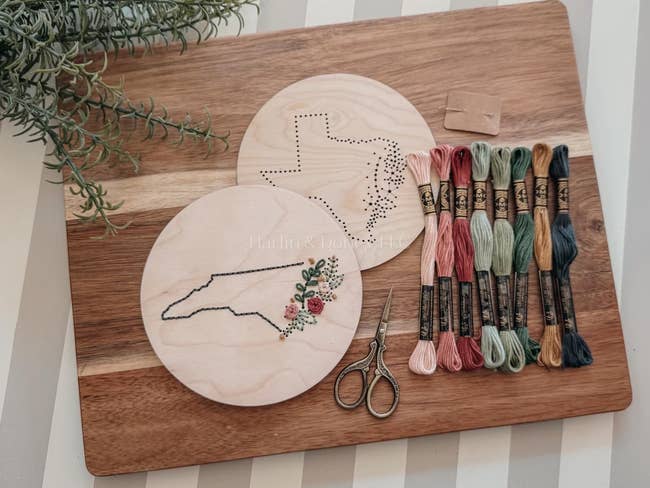 Get it from harlinanddoney on Etsy for $16+ (available in each state and three thread colors).