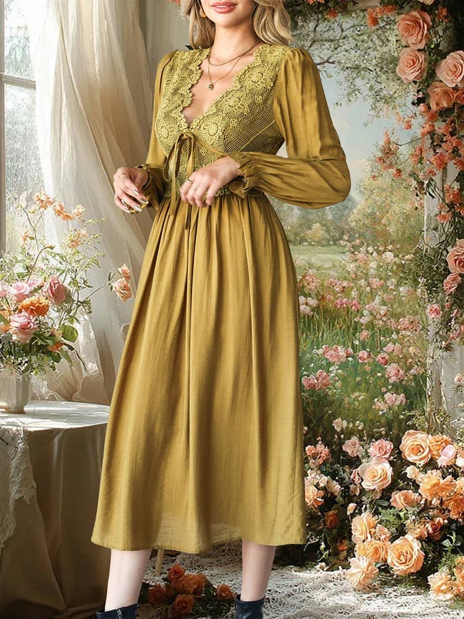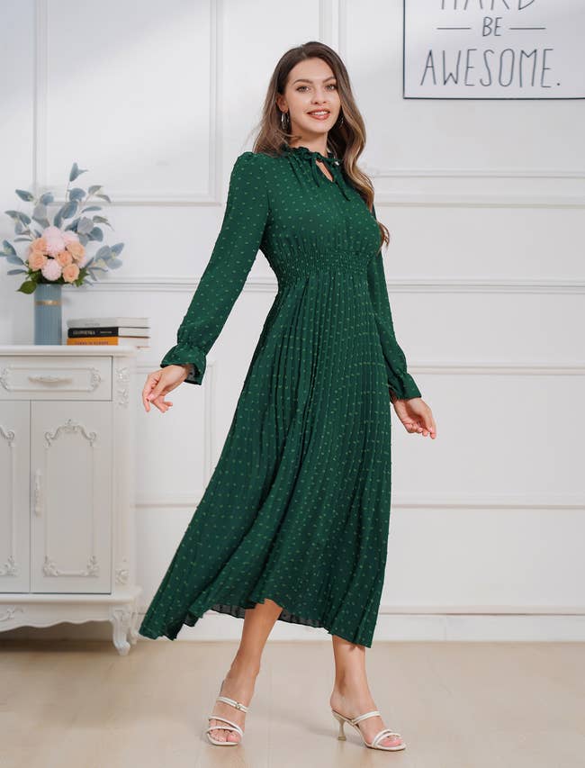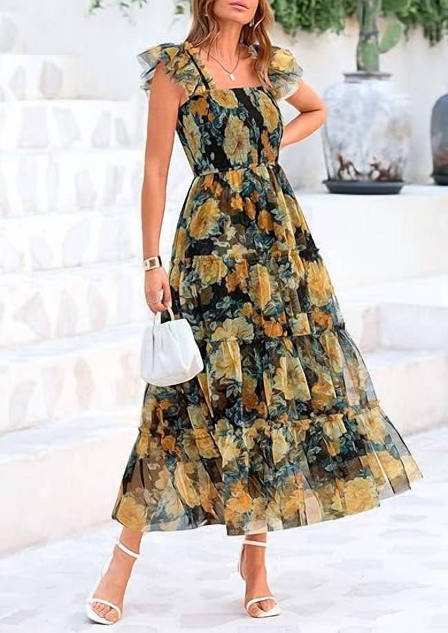 Promising review: "This dress is truly so beautiful in person! The fit is perfect, the quality feels so nice, and the colors are vibrant! If you are on the fence I say go ahead and just get it! I am 5'3 and the length hits me around my ankles for reference!" —Tonya