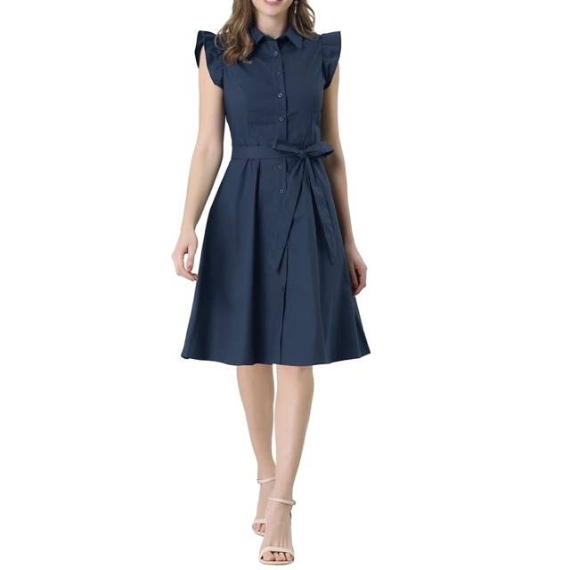 Promising review: “Nice fabric — no stretch, but the design and details are stunning and so cute. I'm bringing this on my April cruise for a casual dinner dress. It's probably going to wrinkle, but I'm willing to bet I can steam it. It's the ideal spring-cruise dress in nautical navy blue. I'm apple-shaped, and this cut dress actually gives me a waist! Buy it now!” —Jill
