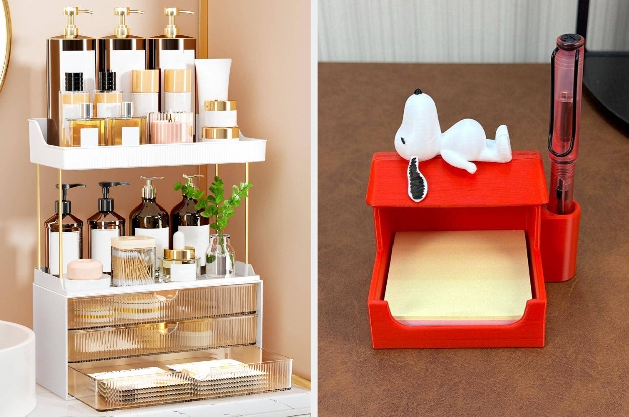 We hope you love our recommendations! While every product is independently chosen by our editors, BuzzFeed and our publishing partners may collect a share of sales or other compensation from the links on this page. You can read more about how our affiliate partnerships work in our Editorial Standards & Ethics Guide. However, I’m not sorry for how immaculate your home is about to look. I know you've had "organize my life" on your to-do list for a while now, and I'm here to tell you it's finally time to make some steps toward putting an oh-so-satisfying checkmark by it. Whether you need to tidy up your laundry supplies, water bottle collection, or even your most-used headbands, these organizers will have everything in its proper place Promising review: "I have purchased this product twice now, once for my eldest and once for my youngest. It is incredibly straightforward to put together, and I did it on my own, while sick, in maybe 10 minutes. When built, I worried it looked a bit smaller than I’d hoped, but it fits approximately one million stuffed animals with room to stretch. I highly recommend this — it is sturdy, real wood, and has held up well. The kids’ rooms went from disorganized to livable in no time." —B Get it from Amazon for $39.99+ (available in three colors). Promising review: "Yes...I have too many clothes. I LOVE my leggings. These saved me soooo much room! Now I have much more space, AND I can see them all easier." —Larry Seymour Get a pack of two from Amazon for $13.99+ (available in eight colors and also in a pack of four). Promising review: "This has been so helpful with managing my daughter’s hair accessories. We were always losing headbands and struggled with organizing them. This is great because it’s efficient for the space and also allows you to see all the headbands. It also keeps the headbands stored safely, so they don’t snap and break." —Lindsay L. Check out these brown pump bottles if you want an even more elevated look! Promising review: "This makeup organizer is amazing and looks so nice on my bathroom counter. The three large drawers hold tons of skincare, makeup, and face masks, and the top tiers are perfect for my perfumes and taller bottles. It feels sturdy, well-made, and has completely transformed how organized my space is. I'm very happy with this purchase and would definitely recommend it." —AE Get it from Amazon for $19.99+ (available in four colors). The set includes two scoops and 16 adhesive labels: scent booster, laundry pods, dryer sheets, baking soda, bleach tablets, laundry powder, laundry detergent, Woolite darks, Oxi booster, dryer balls, fabric softener, laundry sanitizer, and four blank labels. Promising review: "Great way to organize your laundry space. This came with scoops, too, which I highly enjoy. The plastic and lids feel sturdy and look great! I think the thickness helps. They’re not super heavy and are quite functional in my small laundry area. I think these are absolutely worth the money if you like organizing your space." —Camilo Get a three-pack from Amazon for $21.99 (also available in seven other sets). Promising review: "I honestly bought this for my pan lids, and it works great and stores all sizes. Now I'm going back to buy one for my plates. Hahaha. Highly recommend this item, it's solid, but light, and holds six pan lids." —Claire Promising review: "These look great on the front of my fridge! We live in an RV full-time, and it really keeps things looking neat and off the counters. I hate clutter, so these help a lot! They are sturdy, they stay put, and were worth every penny!" —Bikerdude Get it from Amazon for $19.99 (available in three sets and two colors). Promising review: "This is the perfect product to store your loose straws! I had mine just sitting in my cabinet, but they kept falling out! Super easy to basically tape to the inside of the cabinet door. Great value for the money!" —Laura S. Get it from Amazon for $6.99+ (available in two colors). BuzzFeed Shopping editor Elizabeth Lilly says: "I couldn’t be happier with my purchase, which seems expensive for a shower curtain liner but is totally worth the price. Its mesh pockets are incredibly sturdy and even *I* can fit all my shower stuff in there. (FYI, I often keep three or four body washes and conditioners each in the shower at all times.) There’s lots of reinforcement where each pocket meets the liner and at the top of the liner, so dropping a weighty bottle of shampoo in a pocket is NBD. Obviously, you want to try for even weight distribution between the pockets and toiletries, but it doesn’t seem to be an issue. And these smooth-gliding hooks I also bought for my new digs make opening and closing my shower curtain as smooth as buttah." Check out her full review here, #7. Get it from Amazon for $16.94+ (available in clear or gray). Promising review: "Nice product that made me smile the moment I saw it, which is exactly what I wanted. Well packed and on time. Great service!!" —Deborah Rivers Like Nook is a small Etsy shop specializing in cute desk accessories. Get it from Rivers Like Nook on Etsy for $15.80+ (available with or without pen cup and in four colors). Promising review: "We loved these containers and have now bought 20 to hold our entire game closet! We have been able to fit several games in some. Easy to store and easy for my kids to find and then put away when finished. Good quality, haven't had any problems with durability yet, and we play a LOT of games." —bradfieldfamily Get a pack of 10 from Amazon for $48.99 (also available in a notebook size). Promising review: "I like how you can easily put this together in less than three seconds. You can stack the crates for more storage in your closet. They pull out like a drawer, which is super convenient. Great quality and size. I was able to fit a bunch of leggings, shorts, pants, etc., in just one bin." —Samantha Get a set of five from Amazon for $35.97 (