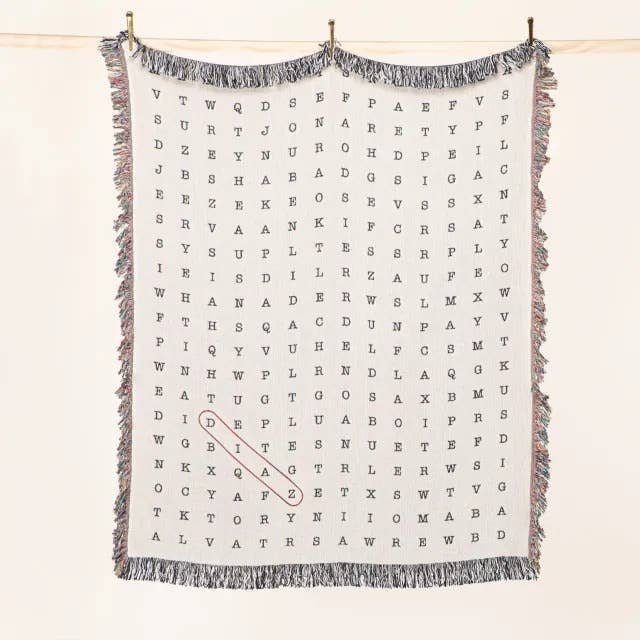 "My 90-year-old mother loves word searches, and she is always cold. I saw this, and my brother, sister, and I got it for her for Christmas. All of us love it! We put her last and first name, my dad's first name, and her 12 great-grandchildren's (it helps her memory!). It is well made and the perfect weight for warmth and coziness. I am overjoyed I found it! Thank you!" —Deni