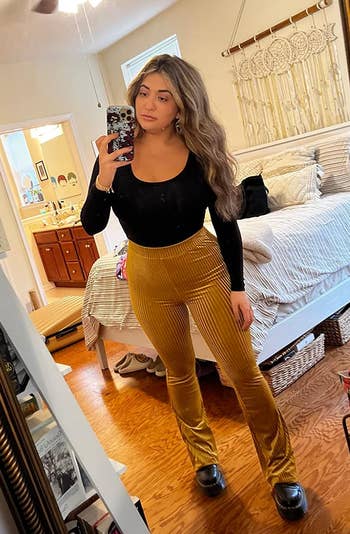 Promising review: "I bought these in green. They are beautiful! The corduroy is very soft, and the color is a deep emerald green. I typically wear large pants, and the large fits great. They have a nice amount of stretch and are tight, as they should be, in the thighs/booty and have a moderate flare at the bottom. I will be buying them in more colors!" —Adina Morgan