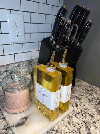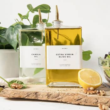 Promising reviews: "These are so unique from the standard oil storage containers. They also hold a good amount of liquid and come with lots of labels, funnel, and topper. They look so sleek and sturdy and fit the aesthetic! I love them." —Mikaela O