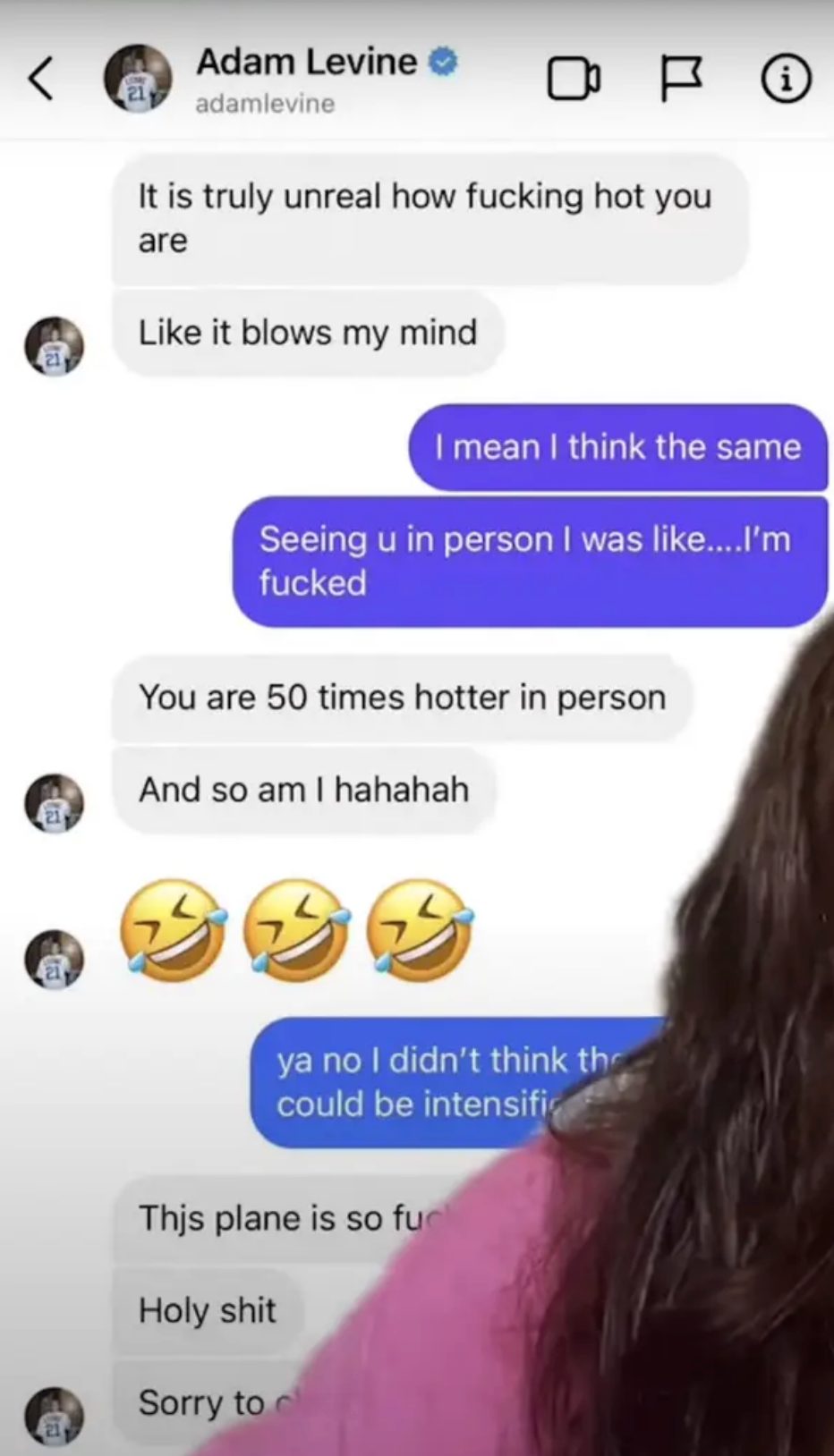 In one now-infamous alleged message, Adam appeared to ask Sumner if she'd be OK with him naming his future child after her. In another, he seemingly told Sumner, “That body of yours is absurd” — a line that has now become somewhat of a meme online.