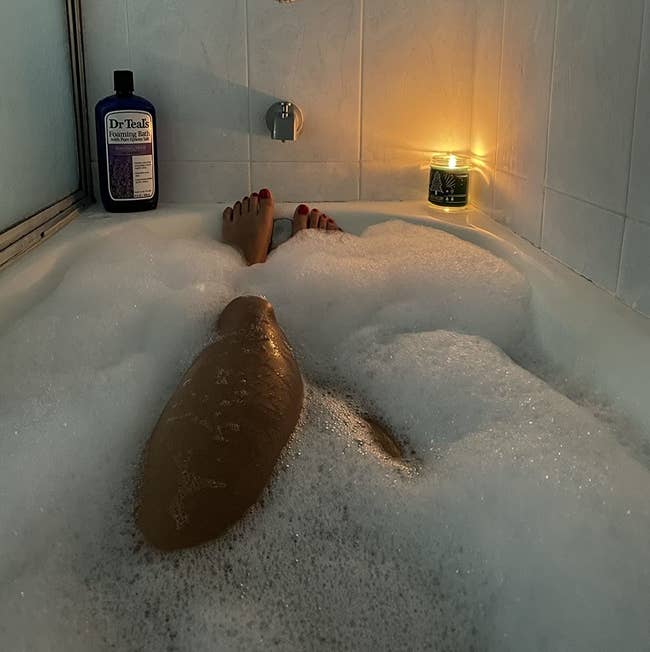 Promising review: "I needed something to help me relax that was not a nap and this did it for me! I used this in an evening bath. Not only did it help me relax, it also helped me fall asleep so good that night. I tend to stay awake in bed (usually on my phone) most nights, but after this bath I fell asleep right away. It didn't bubble a whole lot for me, but it smelled amazing and made my skin the softest it's been in a long time! It's a good sized bottle with a sufficient amount of baths per bottle. Overall, I loved it. I don't take baths too often, but this has inspired me to do this more! 10/10 would buy again." —Priscilla Perez