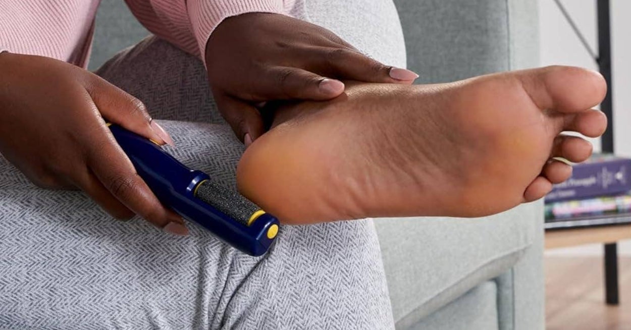 Promising review: "I'm so thankful I found this product. About four years ago I developed a hard callus on my left foot that felt like a hard frozen pea. It would be so painful if it got bumped and all I could do was soak it and take layers off but it just seemed the entire thing would never be 100% gone. I am outdoors a lot and I needed my heels done too. Not only does this smooth out my heels but it took off that hard callus effortlessly. My feet feel so nice and I am just shocked and happy. Do not hesitate buying. I have tried SO many things and truly cannot thank this company enough for making this product." —Julie