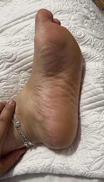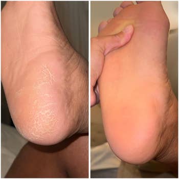 Promising review: "I used these socks with Dr. Scholl's severe cracked heel balm, every night for the first week and then on and off for the next few weeks. Photos (shown above) are about three weeks apart. My heels had deep, painful cracks that would occasionally bleed, and now they're almost gone." —Manuel C.