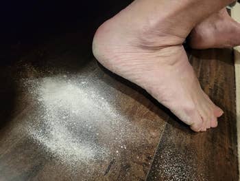 Promising review: "Bought this for my boyfriend who is on his feet all day and was always complaining about how sweaty his feet got. He usually had to bring at least one extra pair of socks to change into during the day. He also had to buy shoes more often because of how they smell. It would be impossible for us to get out the smell. Since he began using this product, he can't believe how dry his feet stay ALL day. His socks don't even smell after a full day of work. He's now obsessed and it's become a part of his daily routine." —Amazon Customer