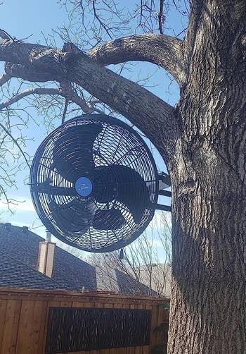Promising review: "Great fan at a good price! I bought this fan for my backyard to help circulate the air in hot days and to help deter mosquitoes at night around the fire pit. This fan worked perfectly. It has three speeds, the highest of which is super strong. The fan at high speed is a bit noisy, but nothing unexpected of a powerful fan. It is also 100% waterproof, which is a must. My only minor issues would be 1) it would be nice if the fan came with a cover for when it’s not used (I bought 20-inch tire storage covers to do the job), and 2) the fan is only adjustable up and down not side to side — if they could make it oscillate that would be great. Having said that, I would recommend this fan for sure and would not hesitate to buy it again." —Bigdad