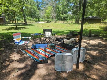 Promising review: "This product works well on outside tables to keep flies off of your food. We used it just last night, and it's lightweight and a great size. No assembling required; just add batteries." —SmileyReviews