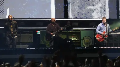 A signed guitar played by Oasis star Noel Gallagher on smash-hits Wonderwall and Champagne Supernova sold at auction in New York for $96,000 (£71,200). The Epiphone EJ-200 was played by Gallagher whilst the Manchester band recorded their second album, (What's the Story) Morning Glory. The 1995 album, which has sold more than 22 million copies, also included songs Don't Look Back in Anger and Some Might Say. The guitar had been estimated to sell for $80,000 (£59,500) when it went under the hammer at Sotheby's. Meanwhile, a handwritten lyric sheet for Don't Look Back in Anger was sold for $38,400 (£28,513). Listen to the best of BBC Radio Manchester on Sounds and follow BBC Manchester on Facebook, X, and Instagram. You can also send story ideas via Whatsapp to 0808 100 2230. The show at the Barbican Music Library celebrates 1996 and includes Mel B's leopard-print catsuit Sade, Phil Collins, Billy Idol and Joy Division/New Order are also among the recipients. Rosie Slater is also handed a 12-month community order after making £4,000 from fraudulent sales. The guitar was played on the band's second album (What's the Story) Morning Glory by Noel Gallagher. From ham sandwiches to cat-induced injuries, here are some of the excuses for gigs being cancelled.