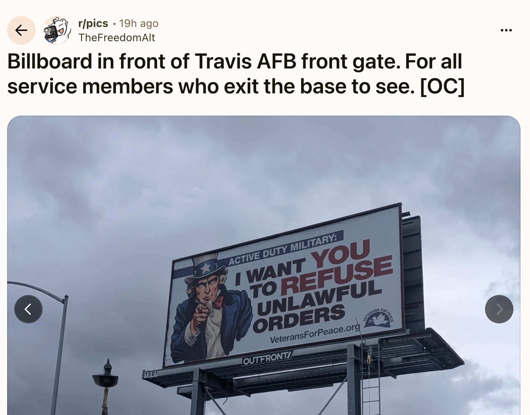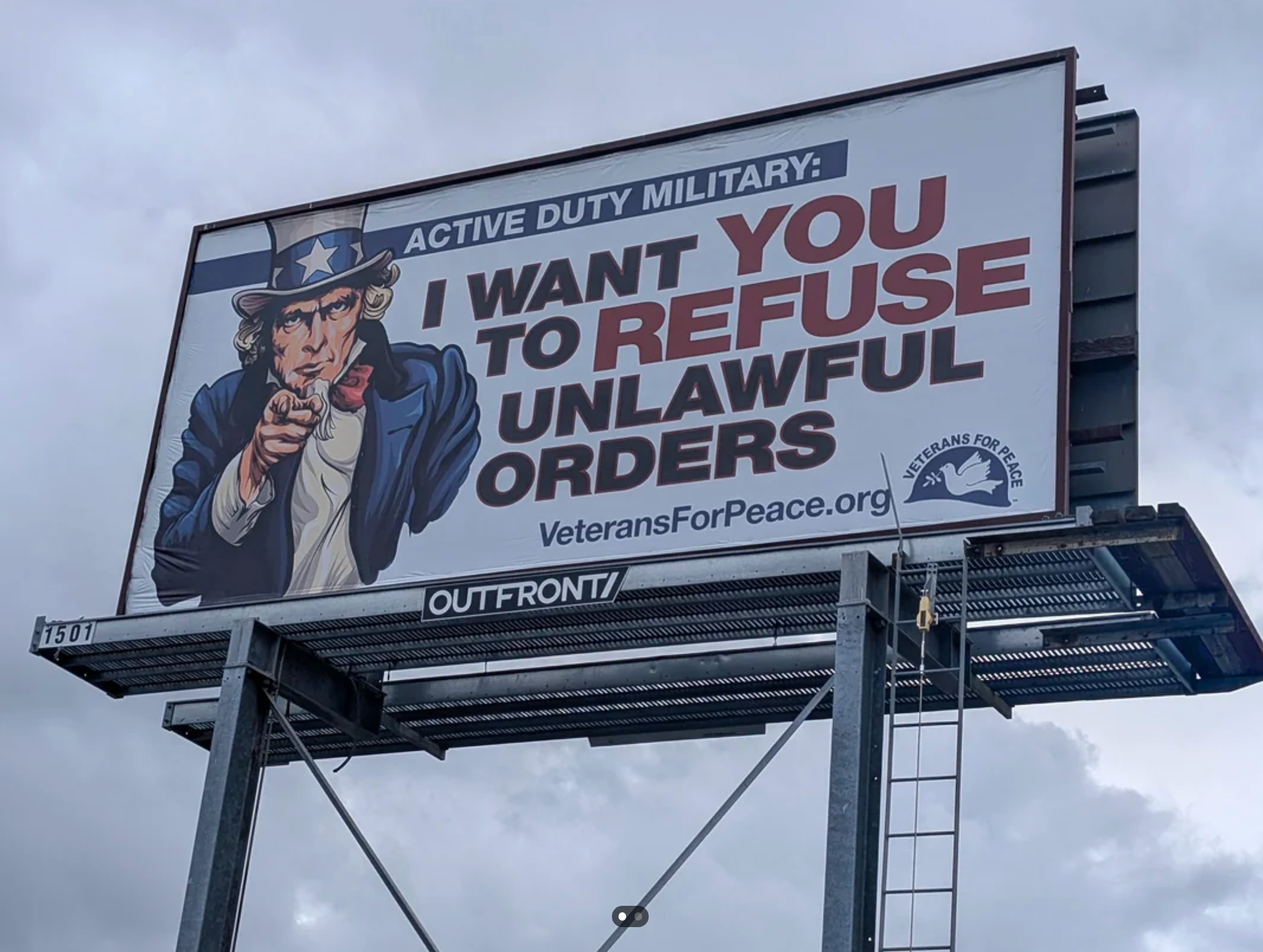 Hi, Iβm Michaela Bramwell, and I'm a Junior Staff Writer here at BuzzFeed, covering everything trending news, from your latest viral TikTok to the chaos of today's politics. The president of Veterans for Peace's Tucson chapter,Β Cara Bissell, discussed the purpose behind billboards like these, telling KPTV that the Trump administration's response to the lawmakers' video, "spurred all Veterans for Peace people to want to put this billboard up and publicize the idea that we do not follow unlawful orders."