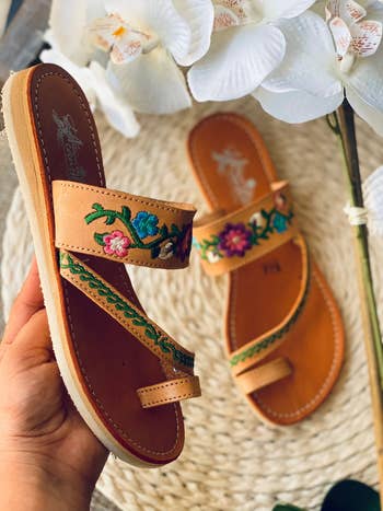 We hope you love our recommendations! While every product is independently chosen by our editors, BuzzFeed and our publishing partners may collect a share of sales or other compensation from the links on this page. You can read more about how our affiliate partnerships work in our Editorial Standards & Ethics Guide. If your feet are screaming to be released from the daily prison of closed-toed shoes, we’ve got you covered with these breezy, comfortable pairs. As warmer weather rolls in, it's time to retire bulky boots and dust off our favorite pairs of sandals — but maybe as you started doing so, you've noticed last year's go-to shoes are looking a little too worn down. If you have the itch to do some sandal shopping, we've got some cute, comfy pairs that'll become your new staples this spring (and summer). Unless otherwise specified, all sizes in this post are listed in women’s. Promising reviews: "I purchased these to wear on vacation a few times. Little did I know that I would live in them for the entire vacation in Puerto Rico. I then wore them every day in Disney for six days straight, and I was the only one in our party not to complain about sore feet and the wrong shoes." —J. Malone "I have plantar fasciitis, and these are the only sandals I can wear all day, every day. I'm on my feet anywhere between 8–13 hours a day. These are fabulous." —Stacey Get them from Amazon for $54.99 (available in sizes 5–11 and 31 colors). Promising review: "I bought these to replace a pair of Chacos in the same style that were at least 11 years old, that I'd had resoled once before. You can actually hike rugged trails in these sandals, and they are the only sandal I've ever owned where I had no concerns putting them on in the morning expecting a full day on my feet. San Francisco Bay Area trails, muddy hikes in Hawaii, cobbled streets in Europe, all good. Also great for wearing into the ocean or a lake with a rocky beach. These fit true to size, I am usually a 9 and the 9 regular fits perfectly. I have never had any issues with the straps rubbing uncomfortably except if I wear them into salt water and don't do a great job of washing off the salt and sand afterward. I really can't recommend these enough if you are going to do anything even vaguely active in a warm climate, even just walking 5 miles around the city. I expect this pair to last another 10 years. When you look at how much they cost, it seems on the expensive side 'for sandals,' but the quality and value is top notch." —sarah b Get them from Amazon for $98.93 (available in sizes 5–14 and in 19 styles). Several reviewers mention the fit runs large, so consider sizing down! Reviewers with wider feet found they fit perfectly. Promising reviews: "A classic and simple slide that is so beautiful. I love the suede pink and although the style is very classic, it is not boring, and they seem really comfortable and not stiff at all. The shade of pink is leaning towards mauve and the fit runs large. I normally wear a size 38.5 and sized down to a 38 and they are perfect." —EleniF "Very cute shoes, just as expected, but they are much softer than I anticipated! Might have to get another color, I can see these going well with everything." —Anna Get them from Anthropologie for $138 (available in sizes 5–10.5 and six colors). FYI, aside from their style and comfort, Tevas are *known* for their durability — one reviewer said their last pair lasted for EIGHT YEARS. This isn't your average sandal that falls apart after one season. According to Amazon reviewers, these tend to run large so consider sizing down, especially if you're usually between sizes. Promising review: "Got these for both daughters and myself for a beach hike trip. I walked over six miles with them and my feet didn’t hurt; they dry pretty quickly too. They quickly became one of my favorites." —Miss. Customer Get them from Amazon for $59.95 (available in sizes 5–14 and many styles). There's also a version available in men's sizes. FYI, these are best suited for narrow to medium-sized feet. Promising reviews: "I literally got compliments on them everywhere we went, and they were so comfortable I could wear them all day walking miles and miles through the streets of New Orleans, and my feet didn't hurt (and that's a small miracle given I have arthritis). They are surprisingly durable, and the woven fabric tops are incredibly soft and comfy. Even when my feet swelled due to the heat and humidity in New Orleans, these were still pretty darn comfy as compared to other shoes I brought along on the trip." —UrbanUtah "These sandals are like cotton candy clouds for your feet. Basically the Rolls-Royce of sandals." —A. Alphonse Get them from Amazon for $34.95 (available in sizes 5–11 and 22 colors). Macarena Collection is a Buena Park, California-based small biz with all sorts of leather sandals, embroidered Huipil shirts, and home goods. Promising review: "I was nervous about fit and comfort, but they were soft and buttery from the get go! Beautifully crafted shoes and very comfortable! I had to add an extra hole in the strap so that they wouldn’t slip too much, but that was an easy fix. I really love these shoes!!" —Bethany Get them from Macarena Collection on Etsy for $56.24 (originally $74.99; available in sizes 5–10). Free shipping is included! Sizing info from the seller: If your normal shoe size is a whole number, order that size. If you're usually in between sizes, size up to the next size (so if you're a 6.5, order a 7). If you have a wide foot, it's recommended to size up as well! Artesanías Camila is a Carthage, Texas-based shop from Blanca Olivera. All of their Mexican-inspired huaraches, bags, hats, and apparel are handmade. Promising review: "I bought two pairs of sandals from this shop and I am so glad I did. They are beautiful, comfortable, and well-made. You won't regret purchasing. Follow the sizing advice. I am so happy with my purchase a