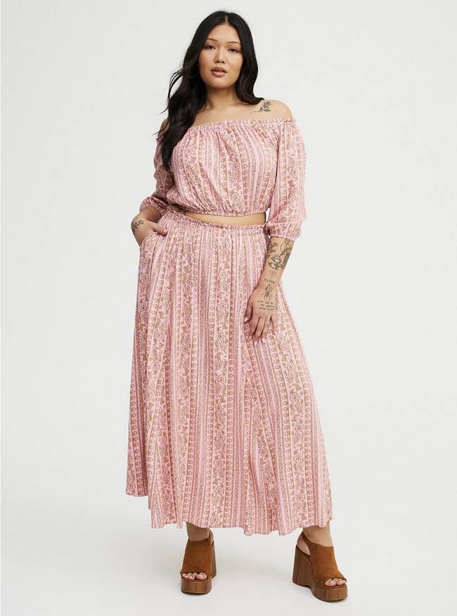 We hope you love our recommendations! While every product is independently chosen by our editors, BuzzFeed and our publishing partners may collect a share of sales or other compensation from the links on this page. You can read more about how our affiliate partnerships work in our Editorial Standards & Ethics Guide. Unless otherwise specified, all sizes in this post are listed in women’s. Promising review: "I absolutely love this shirt. I bought it two weeks ago and have already worn it three times. 🤣 It’s very versatile. I wore it shopping, to dinner with friends, and out at a club with tights, biker shorts, and platform Docs. I’m obsessed and will be wearing it a ton. Love that it’s 100 percent cotton! The material has a nice weight and washes well. Feels high quality!" —Marz33 Price: $27.49+ (originally $65.90; available in sizes M–6X and five colors) Promising review: "I'm obsessed with this cute skirt! It looks even better in person. It fits true to size. So many ways to style it. It's super comfortable, and the length is perfect. I loved it so much, I bought it in both colors!" —LeoNurse08 Price: $59.90 (available in sizes M–6X and in black) Price: $39.90 (available in sizes 6–13 wide width and in black) Promising review: "Love this top! Bought for a trip to Mexico, great with pants, a dress or jeans. Dress it up or go casual. Super versatile and fun!! 😊" —Rayne71 Price: $55.92 (available in sizes M–6X and in rose) Promising review: "I have been looking for a wide-leg jean, and these are just perfect! They fit really well and feel amazing on. I’m a size 18W, and I purchased a 2. Highly, highly recommend!" —Msstewie Price: $79.90 (available in sizes M–6X, three inseams, and two colors) Promising review: "OMG!! I love this dress! I would go up a size because there is little to no stretch! It is so pretty, and I love the fringe at the bottom! Torrid needs to make more pretty dresses like this! This is the best one yet!!" —Nane1 Price: $37.49 (originally $89.90; available in sizes L–6X) Promising review: "I love this romper! It is so cute and fits great! I love the material. It's so light and airy. It's perfect for my trip to Hawaii!!!" —Perfect For Hawaii Price: $36.72 (originally $45.90; available in sizes M–6X and three colors/patterns) Price: $49.90 (available in sizes M–6X and three colors) Promising review: "I have only had this skirt for about a month, and I have gotten compliments on how pretty it is almost every time I wear it. It is a very nice weight and is super comfortable. It also has pockets, which is a big plus! 10/10 would recommend." —Anonymous Price: $79.90 (available in sizes M–6X and three colors/patterns) Promising review: "Adorable shirt, very spring and cheerful, comfortable wash as well, perfect for work or casual. Love it." —Budzmud Price: $39.90 (available in sizes M–6X and 10 colors) Promising review: "This is a gorgeous set! Just do it! I’ve never worn anything like this before, and I was worried, but it is absolutely gorgeous. I love it more than any of the other skirts I tried on, even though others were cute. This takes the cake! Modern, young, fresh, beautiful. Perfect silhouette. 11 out of 10." —LucidSound Price: $89.90 (originally $89.90; available in sizes M–6X and solid purple) Promising review: "This halter top is so cute! You can definitely size down one, especially if you have a smaller chest like I do. The back is really open, but perfect for the hot weather. I got the pink top, perf for my upcoming concert!" —Han22 Price: $23.92 (originally $29.90; available in sizes M–6X and in pink) Price: $25.90 (available in sizes M–6X and three colors) Promising review: "Best purchase in ages! The fit of this dress is perfection. It's so comfortable and airy, you can wear the top off shoulder or on. The skirt is the perfect length, and I LOVE the fabric — it's so flowy and soft. It's just lovely for summer. Makes this goth girl so happy. I usually struggle with finding black dresses that are actually lightweight and won't make me suffer from the heat in the summer." —KaosKat33 Price: $71.92 (originally $89.90; available in sizes M–6X) Promising review: "I love a good wide-leg jean, but these are next level. They’re my favorite, hands down. They feel like real denim, as opposed to the stretchy stuff, and the POCKETS! I can fit my cellphone in the front pocket, and my keys entirely. I even bought the light wash color, and I usually dislike light wash jeans, but this cut and style is too good." —RTR0314 Price: $89.90 (available in sizes 10–30, three inseams, and five washes) Promising review: "Love these shorts! Very comfortable and true to size. If you are in between sizes, I'd say go with the smaller size since these have stretch." —Bertleo Price: $49.90 (available in sizes M–6X and in green) Promising review: "This is a super cute set. The top is amazing, and the skirt has a lot of stretch to it. Torrid, please make this in other colors." —MochaLuvvv Promising review: "Shirt fits just right. It’s is very soft and doesn’t fade or lose color when you wash it. Just the right length to wear with your jeans." —More anonymous Price: $11.49+ (originally $27.90; available in sizes M–6X and 21 colors) Promising review: "Super cute print, lightweight for summer, and fits perfectly. Can't wait to wear it in the warmer months ahead." —RoozieLynne Price: $55.90 (available in sizes M–6X and in black) Promising review: "These hair clips are extremely cute. People at any age and of any size can wear them. The design is very innovative." —Lamf Promising review: "Purchased and decided to wear it the next day. I wore a long-sleeve, black, deep V-neck shirt with black leggings and black Ugg boots. I bunched the shirt all the way and tied it in a bow. Hair is just a simple messy bun. This was so cute and made the ENTIRE outfit. I was comfy, but I looked put together and like I actua