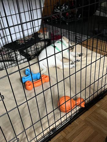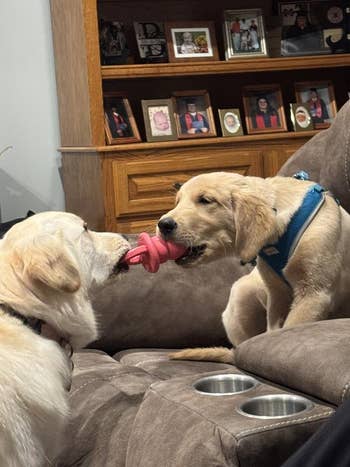 We hope you love our recommendations! While every product is independently chosen by our editors, BuzzFeed and our publishing partners may collect a share of sales or other compensation from the links on this page. You can read more about how our affiliate partnerships work in our Editorial Standards & Ethics Guide. Raising a puppy is basically like living with a tiny, adorable roommate who doesn’t pay rent and occasionally bites your ankles, so you’re going to need all the help you can get. Promising review: "My 6-week-old lab puppy absolutely loves his puppy. I put the collar that was on him when I got him on the puppy, and he snuggles it all night in his crate without a sound." —Bryan Price: $39.95+ (originally $49.99+; available in five colors) Promising review: "This is an excellent gate for separating our puppy from the rest of the house while he potty trains. It is strong enough to withstand a 40ish-pound Labrador who stands to greet everyone entering the house." —Mary Price: $39.99 (available in three colors) Promising review: "I have a large-breed puppy who was very bitey during teething. This product is large enough for a large breed puppy to reduce the risk of choking or swallowing. It can also be frozen for added soothing. It survived for more than 4 months through the entire teething period, while the other dental chews all broke at some point. The ring also helps puppies carry it to their favorite spot." —Ziqi Price: $8.96+ (originally $8.99+; available in two sizes and colors) Promising reviews: "At first, Willow wasn't quite sure about these freeze-dried beef liver treats. The texture gave her a moment of 'paws' (pun intended). But once she took that first crunchy bite, it was game over — she's absolutely hooked! Now, these treats are her go-to favorite. She'll sit, stay, and maybe even do a backflip if it means getting one. The 14-ounce tub is the perfect size to keep her tail wagging without running out too soon. If your pup needs a high-value treat to bring out their inner superstar, these are a must-try! Willow gives them two paws up!" —Kathy "Our 5.5-month-old pup loves the freeze-dried treats. I usually cut the larger ones since use for training. So lasts even longer!" —Heidi Promising review: "The Midwest line of dog kennels is so affordable that you may find yourself buying a few of them for your dogs! This one folds and unfolds within minutes and is extremely sturdy. We bought three Midwest crates so far for our mini dachshund puppy, Wolfgang, who quickly outgrew his first one (18 inches). Now he has been upgraded to two other Midwest 'condos' which fit his growing body comfortably. All three kennels have arrived the NEXT DAY after ordering, with FREE SHIPPING ($49 purchase), which is definitely a plus! Tip: If you have a puppy, pay attention to the sizing chart and don’t just eyeball his/her size (my mistake)... puppies grow bigger almost overnight! What’s nice about these kennels is that they come with a panel/separator so you can choose the correct one based on your dog’s anticipated full-grown size, but confine the area as the puppy grows." —SamIam4ever Price: $25.99+ (originally $35.99+; available in eight sizes) Promising review: "My puppy loves this Pupsicle. She never got into the leading competitor's treat-dispensing ball — it was too awkward for her to carry and hard to get all of the treat out of the ball, which is not actually shaped like a typical ball, but more like a beehive. This pupsicle has a fantastic design. My puppy can easily carry it to her bed, and she happily works on it for 20 minutes — I timed it. I can do 20 minutes of yoga while she's entertained with her pupsicle. Oh, and there is no leftover mushy treat and no mess to clean up afterward, and it's made of heavy-duty rubber that she can't destroy. Even though the instructions say that it is dishwasher safe, I plan to just hand-wash it so that it doesn't warp. It was a pricey toy, but totally worth it as it seems that she will actually enjoy using it and it will last a very long time." —Elizabeth Price: $19.99+ (available in three sizes and three colors) Promising review: "This is perfect for our puppy! We have put either yogurt or peanut butter on it. It keeps her occupied for a bit and relaxes her. She absolutely loves it!" —Jody Promising review: "I recently bought this ball for my 4-month-old Pit mix, Kobe, and he absolutely loves it! He’s a chewer, and those puppy teeth are no joke, so this was the perfect toy for him to play with all day long without having fuzz or other remnants around the house! I’m so glad we bought this product, it keeps your pup busy, entertained, and happy! Who wouldn’t want that for their furry friend?!" —Alex Price: $8.50+ for a two-pack (originally $12.99+; available in three sizes) Promising review: "This pizza snuffle mat is so cute and fun! This is my pup and my first-ever snuffle mat, and I am super impressed so far! The 'crust' makes a great crinkle noise; each piece of the pizza is held on by sturdy Velcro, but is easy to remove and replace. It has lots of places to stuff and hide kibble or treats, and each piece has a squeaker! My 3-month-old, 23-pound puppy loves it! I haven't yet tried to wash it, but it looks like it will hold up well." —Jessica Promising review: "These were good prices for the quality and quantity. My puppy absolutely loves to chew on them. It has helped with her teething, as well as something to play with." —Monique Price: $26.84 (originally $50.99; includes six pieces) Promising review: "I have a 14-year-old Akita mix who devours every toy we have gotten him. He never stops tearing them apart, so most only last a day or two. In 14 years, we have bought four large Kongs, which he gets nightly. That is a record none can beat. Plus, no nylon shards in your dog's gut." —Kathy Price: $7.96+ (originally $8.99+; available in six sizes) Promising review: "With three dogs running around, 