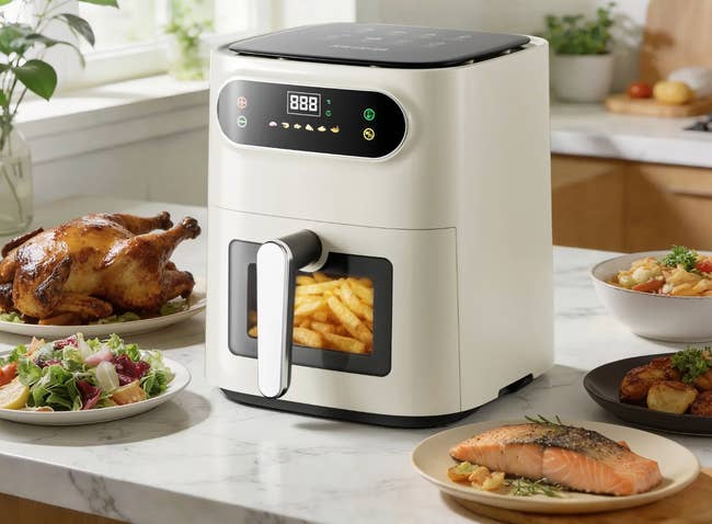 Promising review: "I really like this air fryer, it works really well for daily cooking. I just love it. The 7.5QT size is perfect for making food for my whole family, and it heats up fast and cooks chicken crispy. I like the viewing window so I can check vegetables without opening it, and the controls are simple and easy to use. My chicken nuggets tastes great with much less oil, and cleaning is quick and easy too—overall very convenient and worth it! Love it" —Kritika
