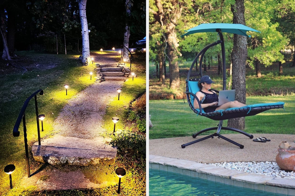 We hope you love our recommendations! While every product is independently chosen by our editors, BuzzFeed and our publishing partners may collect a share of sales or other compensation from the links on this page. You can read more about how our affiliate partnerships work in our Editorial Standards & Ethics Guide. Wouldn’t it be nice to have your own little outdoor oasis you can retreat to? Promising review: "I love these. They look great on my little patio. They are very well made and super easy to put together. They drain well and hold a fair amount of flowers and soil for the size. I found them to be sturdy and they seem pretty durable. It’s a really good value for the price, too. I highly recommend!" —Anonymous Get a set of 10 from Amazon for $19.59+ (available in two sizes and three colors). Brightech is a small biz that specializes in home lighting. Promising review: "These are amazing! They look and feel super expensive. The plastic bulb around the LED light is sturdy and doesn’t bend when pressure is applied. The cord is nice and thick with heavy-duty hangers built in. The solar panel is easy to install and operate and the lights stay on all night from a day's charge. Not too bright but not too dim either! We LOVE our lights! One strand perfectly lights my 25x12 front porch." —Steffany Get it from Amazon for $34.99+ (available in three sizes and in soft white or warm white). Each set of these lights comes with eight stems that have bulbs on the end. Promising review: "I love these little balls of moving light in our garden! Make sure you 'loosen' them up out of the box. They are very upright at first, but the wires flex, and you can arrange them to appear to float in the night. I plan on buying more to give the illusion to my whole backyard. They are not too bright, but absolutely are brighter than many of my other solar lights. So far mine have stayed lit until morning!! The wind makes them bounce and sway, just enchanting!! Buy some! They will make you happy!!" —Ruth Anderson Get a two-pack from Amazon for $13.98+ (also available in larger packs). Promising review: "I have had this pool for about two weeks now and I LOVE IT!!! Was simple to set up, I got a little electric pump and it took about 10 minutes to inflate, then about half an hour to fill with water. Pay attention to make sure you set it up on level ground or it will be lopsided. I live in South Carolina so it is already hot and humid, and I use it about every afternoon. It is probably good for two adults, maybe one adult and a couple of kids. The built-in seat and headrest are really quite comfy and relaxing. I will definitely buy this same pool again if it springs a leak and can't be fixed, if I could give it 10 stars, I would. LOVE, LOVE, LOVE it!!!" —Kathryn J. Promising review: "We love this lounge chair!!! The price was fabulous!! (And just a note... If you take care of your things — i.e. cover up the swing with a tarp and bring the cushions in when not using it — It will stay like new. Sun and rain can age anything! Easy-peasy!!) This lounge swing is so comfortable and made very well!! And it only took my hubby and me 25–30 minutes to put together. Take my word for it... you are not going to find a nicer lounge swing at this price!!" —Marash Get it from Amazon for $199.99 (available in 15 colors). These chairs are foldable so they can easily be stored when not in use. It also makes them great for camping, the beach, etc. Promising review: "I am super excited to share my feelings on these chairs! After doing a lot of research, I decided to go with these, and I am so glad I went with these! These are without exaggeration the best beach chairs I have ever lounged in. They come fully assembled, with the exception of the side drink rest, which is very easy to pop on. These fold up quite compactly and are very easy to transport. And these are so comfortable! When lounging in these chairs, I am incredibly relaxed. I look forward to lounging on the beach or in the backyard in these chairs. I have been a broken record telling everyone how wonderful these chairs are. You cannot go wrong if you go with these chairs!" —Bobby D Get a set of two from Amazon for $99.99 (available in 45 colors). Promising review: "What a cool use of space and it's a great match for our outdoor set. I store sunscreen and other items when not entertaining. There’s a reason thousands of people purchase this. It’s a functional cool piece." —Mamma 4 Get it from Amazon for $79.99 (available in two colors/styles). Promising review: "Its sturdy construction and classic design make it a standout piece for any patio. The robust cast-iron and steel frame ensure longevity, while the generous size accommodates comfortable seating. Elevate your outdoor space with this timeless and reliable garden bench." —Zhang_Shawn Get it from Amazon for $143.99 (available in seven colors/styles). The five quick-connect nozzles range from intense jet to gentle spray, so you can tackle all kinds of messes such as mildew, tar, rust, grease, mud, etc. The pressure washer also comes with two detergent tanks, a garden hose adapter, a 20-foot high-pressure hose, and a 35-foot power cord. The Total Stop System trigger will automatically shut off the pump when the trigger is not engaged, which can help save energy and prolong pump life. Promising review: "I am immensely pleased with my purchase. It has been superb so far. Installation was a breeze. Feels and looks like a quality product. Did a good job on my car. Water pressure was superb. Has different end nozzles for various jobs. I used the recommended end nozzle for washing my car, and it worked perfectly. I am certain this item would last an eternity, but only time will tell. Certainly a bang for the money spent on this pressure washer. I have absolutely zero regrets. Connectors did not leak as stated in reviews from other purchasers. Yes, it is easy to cross-thread the connectors if you don