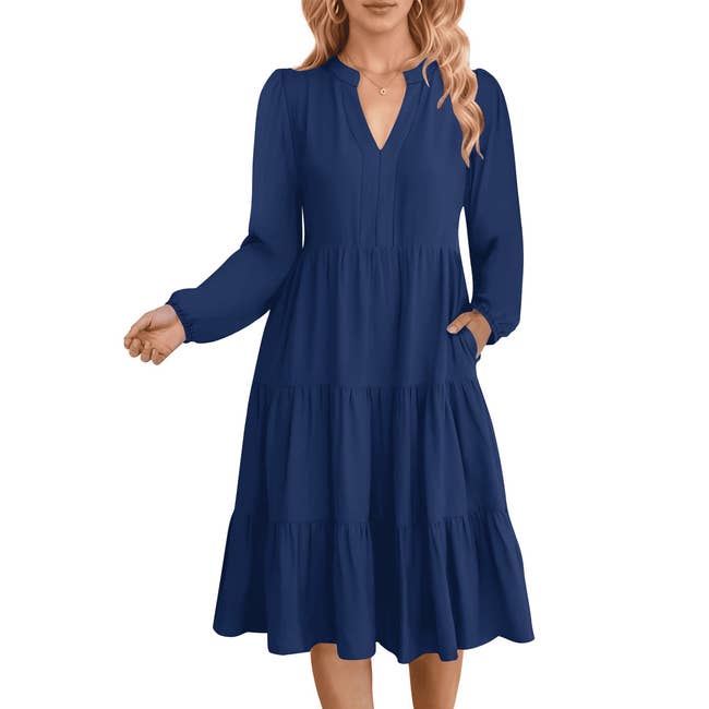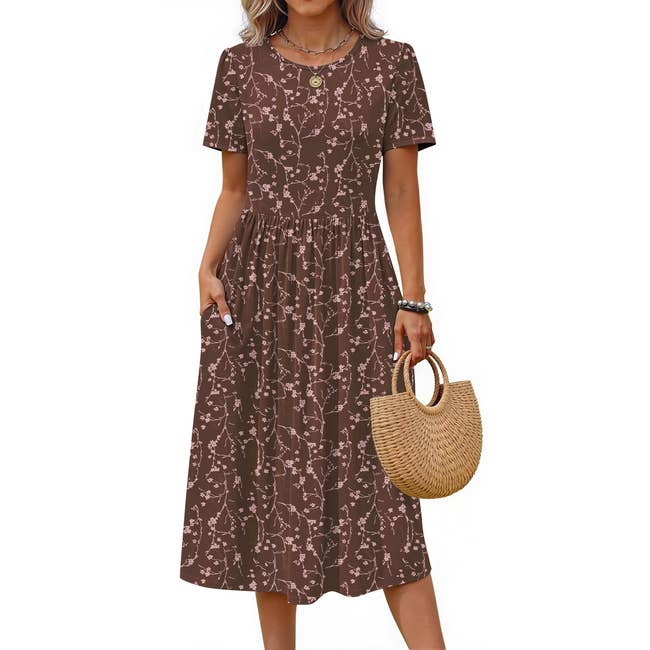 Promising review: "I like the loose fit of the dress. It can be worn casually as it is described, but dressy as well. The pockets are a big plus for me. The material is light and airy, and I like wearing mid-length dresses, so this dress checks all the boxes for me." —Claudette