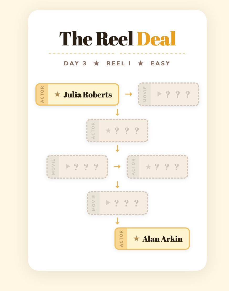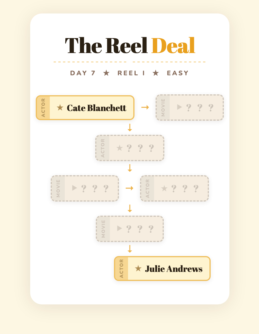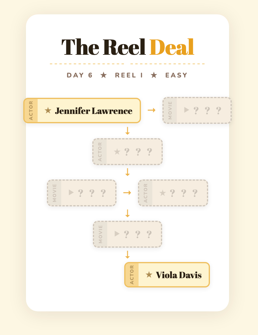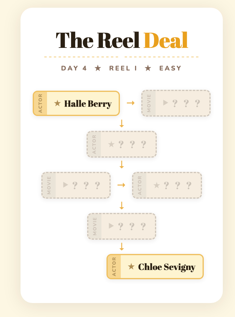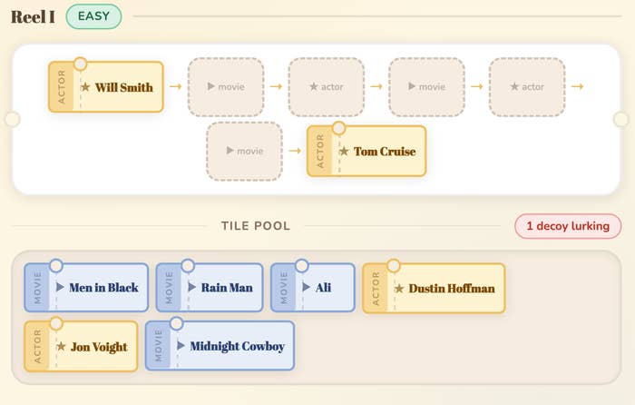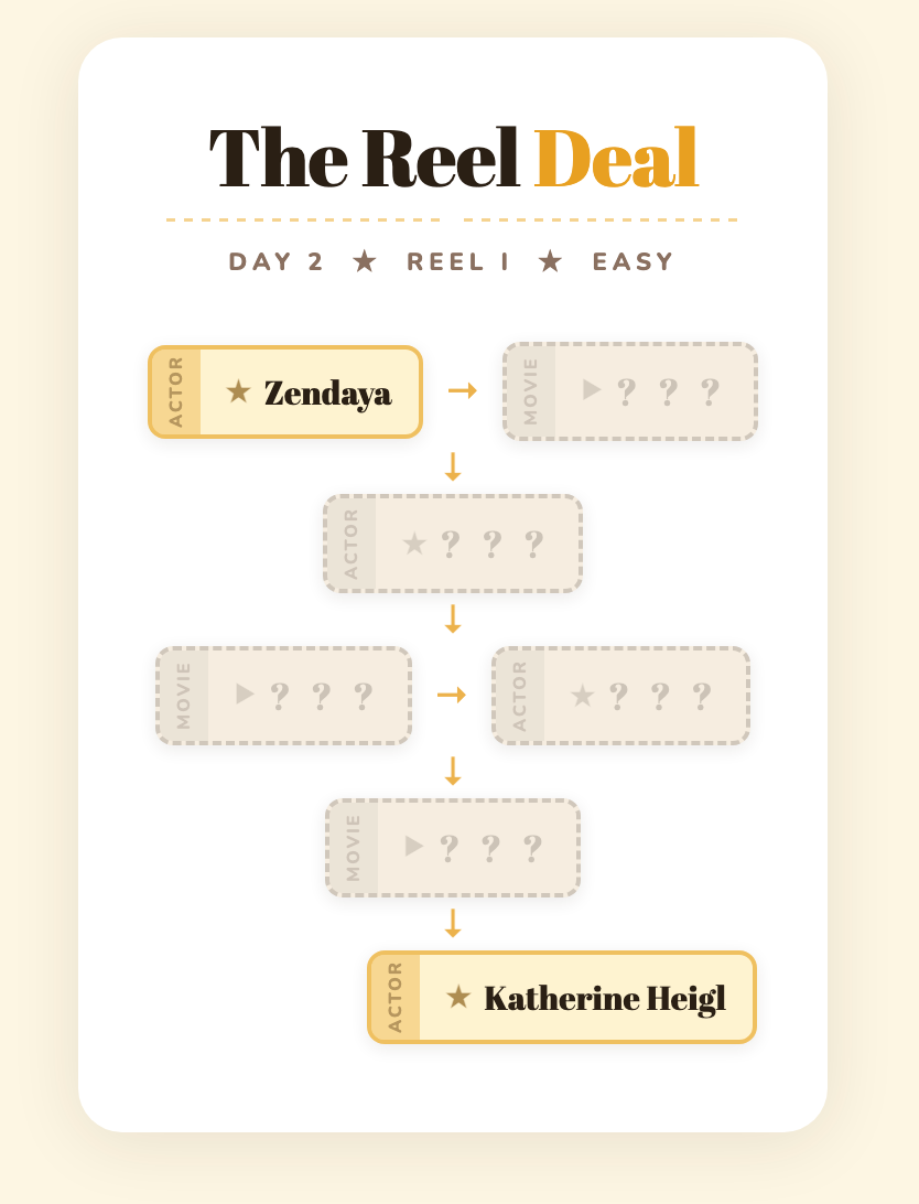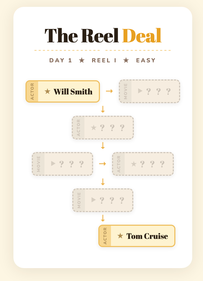 All of BuzzFeed’s The Reel Deal movie chain puzzles in one place. New puzzles drop daily at 10 a.m. ET. 🎬