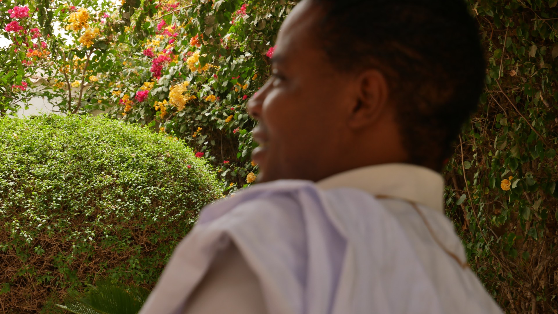 He now tries to “blend in” with the locals to avoid arrest by wearing the typical flowing boubou robe over a button-down shirt and oiling his normally textured hair into a sleek finish.
