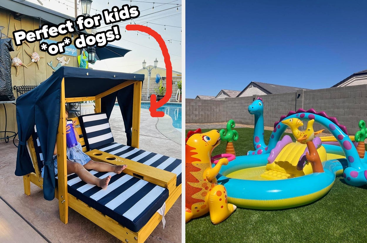 We hope you love our recommendations! While every product is independently chosen by our editors, BuzzFeed and our publishing partners may collect a share of sales or other compensation from the links on this page. You can read more about how our affiliate partnerships work in our Editorial Standards & Ethics Guide. I’m the Home and Garden Editor at BuzzFeed, where I write articles that connect readers with the products, ideas, and trends that help make a house feel like home. And honestly, it can. A comfortable outdoor sectional can turn an empty patio into a proper hangout spot, outdoor toys can keep the kids entertained while you sit down and relax for once, and details like privacy screens and window chimes can make the whole space feel a lot more... thoughtful? Intentional? Well designed? All of those? Yes! So, if your goal is to make your outdoor space feel a little more vacation-coded, these are the kind of tips and tricks that'll get you there. Promising review: "Was actually a little bigger than I expected to be for the price. Beautiful and well worth the money. Sounds beautiful." —Ashleigh Yates Get it from Amazon for $17.99+ (available in two sizes). Promising review: "Ok, so I absolutely LOVE this! So much so, I have bought two more for gifts, lol. They shine wonderful amounts of light. The whole unit is lightweight. Hangs well and blows nicely in the wind. I could watch it for hours... and have. I see more orders in my future." —Fairy girl Get it from Amazon for $9.98+ (available in 18 shapes). SWOOC is a family-owned and operated small business that's been operating out of New Jersey since 1961. Promising review: "I bought this for the kids to play during cookouts. We have corn hole and other games as well, and I find myself playing this as much, if not more, than corn hole. Great quality, and it comes with a carrying bag to put away for easy storage and clean up." —Alan Rich Get it from Amazon for $119.99+ (available in two sizes). Promising review: "They arrive ready to go. I didn't realize they came with side trays, so that was a very happy surprise for me. We spend the evening outside with friends, very comfortably in our new chairs. They're good quality, seem sturdy, and I'm excited to sit outside a little more often because I have a comfy chair to do it in." —Elly Get it from Amazon for $99.98 (available in 59 colors and patterns). Promising review: "We love this lounge chair!!! The price was fabulous!! (And just a note... If you take care of your things — i.e. cover up the swing with a tarp and bring the cushions in when not using it — It will stay like new. Sun and rain can age anything! Easy-peasy!!) This lounge swing is so comfortable and made very well!! It only took my hubby and I 25–30 minutes to put together. Take my word for it... you are not going to find a nicer lounge swing at this price!!" —Marash Get it from Amazon for $199.99 (available in 15 colors). Promising review: "I am very happy with this reed fencing. The lovely brown color and tight weave with the string is so much better than ones I've had in the past that were woven with wire that look shabby and horrible. These are a wonderful quality for the price, making putting up large sections of fencing more affordable. They are not completely private, as people have mentioned, but that's not what I wanted. I wanted to be able to see through a little bit, and they work great to give some sense of separation and privacy." —Lauren S. Get it from Amazon for $44.99+ (available in 15 sizes and two colors). Promising review: "This is a great product for any outdoor space. It provides extra privacy whilst adding beauty to my balcony. The leaves were all intact and it was easy to install with the zip ties that came in the box. The fence has been stable, never falling down nor loosen up its grip. During rain, I've never experienced the leaves coming off/apart. If you're looking to spice up your outdoor area with faux greenery, this product is a great quality fence and highly recommend!" —C.C. Be sure to read the ASPCA's hot weather safety tips for animals! Promising review: "Comes in a relatively small box, no setup required. Drain at the bottom and folds up easily. So glad I bought this one. It's very sturdy. We bough the medium and our dogs are both around 40-50 pounds." —L. Buckland Get it from Amazon for $32.89+ (available in four sizes and colors). Promising review: "I sprinkled it on my lawn expecting the usual patchy disappointment. Next thing I know, my yard is looking like it belongs on the cover of Better Homes & Gardens. The neighbors suddenly started waving at me, dogs come by just to roll in it, and I’m pretty sure my mailman lingers just to admire the turf. It grew so fast I half expected it to start paying rent. 10/10 would recommend — unless you like being the only person on the block without a golf course in front of your house." —Kayla Mom Get it from Amazon for $14.97+ (available in six sizes). SWOOC Games is a small biz specializing in game sets, many of which are outdoor-safe. Promising review: "Our family loves Yahtzee, but Yardzee was so much more fun! It is like a giant life-size game. It was so much fun to play outside as a family. We had ages 7–65 playing and enjoying the game. As a homeschooler, I also love that it sneaks in math and writing." —The Waldock Way Get them from Amazon for $59.99+ (available in two dice sizes). Promising review: "I cannot understand how something this size can possibly produce such amazing loud clear sound and bass. It is a truly incredible device that I intend to use daily because it works well outside too. Do not be deceived by the affordable price. It is significantly better than a $400 JBL. The battery life is great, too. If I want it loud, half the volume is all you need. If I want to blast my neighbors, 80%. I haven’t needed to push it further. The bass-up function is awesome. You’re gonna love this thing." —Ro