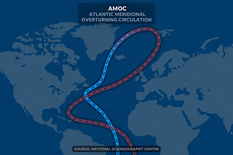 Add another study to the pile of research raising alarms about a looming climate disaster. Scientists have been closely watching the Atlantic Meridional Overturning Circulation (AMOC) for years. In April, two studies noted the critical current is in danger of weakening or even collapsing due to climate change, which could impact the climate and weather for hundreds of millions of people. If you missed those studies, you might still know the current from the movie "The Day After Tomorrow," which took quite a few liberties in its depiction of what would happen if the current suddenly collapsed due to climate change. Now, a new study released April 29 says the AMOC has changed rapidly in the past, due to "violent volcanic eruptions" that eventually cooled the entire planet. The current threat to the AMOC isn't volcanoes, but excess carbon dioxide in the atmosphere from human-caused climate change. According to the lead author of the new study, Lucien Nana Yobo of Texas A&M, his research "shows how sensitive the AMOC is to climate disturbances." "The Atlantic Meridional Overturning Circulation really is one of our planet’s key circulation systems," said Niklas Boers from the Potsdam Institute for Climate Impact Research in Germany, the author of a previous study on the topic. The AMOC is a crucial conveyor belt for ocean water and air, which influences weather. Warm, salty water moves north from the tropics along the Gulf Stream off the U.S. East Coast to the North Atlantic, where it cools, sinks and heads south. The faster it moves, the more water is turned over from warm surface to cool depths. The cycle keeps northern Europe several degrees warmer than it would otherwise be and brings colder water to the coast of North America. Roughly 12,900 to 11,700 years ago, Earth rapidly cooled due to violent volcanic eruptions that disturbed the AMOC, a new study in the peer-reviewed journal Science Advances says. Originally, scientists thought an extraterrestrial impact such as an asteroid or comet strike triggered the AMOC disruption, which scientists call the "Younger Dryas" period. Now, research strengthens an alternative theory that attributes the cooling to a violent cluster of volcanic eruptions. The cooling was sparked by atmospheric changes from the volcanoes, which disturbed the AMOC – a massive oceanic circulation "conveyor belt" that transports heat globally and is in danger of weakening or collapsing, this time due to human-caused climate change. Nana Yobo and his colleagues' examination of North American sedimentary records show that volcanic activity triggered this AMOC-linked colder period. "Temperatures dropped by several degrees in the Northern Hemisphere, likely altering ecosystems and forcing early humans to adapt to colder, shifting environments," Nana Yobo said. Nana Yobo said the Younger Dryas was a much more abrupt shift than what is currently happening, but it shows how sensitive the AMOC is to climate disturbances. According to Nana Yobo, volcanic eruptions cooled the Earth's surface by blocking sunlight, which disrupted temperature and salinity in the North Atlantic Ocean — key drivers of the AMOC — leading to a slowdown. Also, the evidence points to a weakening of the AMOC, but not a complete collapse. "No, but this is one of the first to show a link in cluster of eruptions in ice cores and sediment records across North America at the timing of the Younger Dryas using geochemical evidence," Nana Yobo said in an email to USA TODAY. This article originally appeared on USA TODAY: Infamous AMOC disaster scenario can rapidly unfold, study finds
