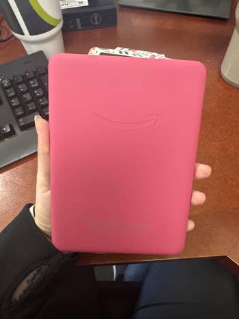 Promising review: "I'm a hardcore actual book (made of paper) lover, and set in my ways, but one of my favorite authors has begun publishing their books on Amazon, and you can't get them via libraries, etc., so I had to buy an e-reader. It takes some getting used to, and some cussing, but I do like it now. I do still prefer old-fashioned books, but I will admit that e-readers have several advantages. I was worried that the light would hurt my eyes and cause migraines, due to my extreme light sensitivity, but it doesn't. The light is adjustable and easy on the eyes (and head). The battery lasts forever. It holds SO MANY books. It's very lightweight. I have no complaints." —Tahnna